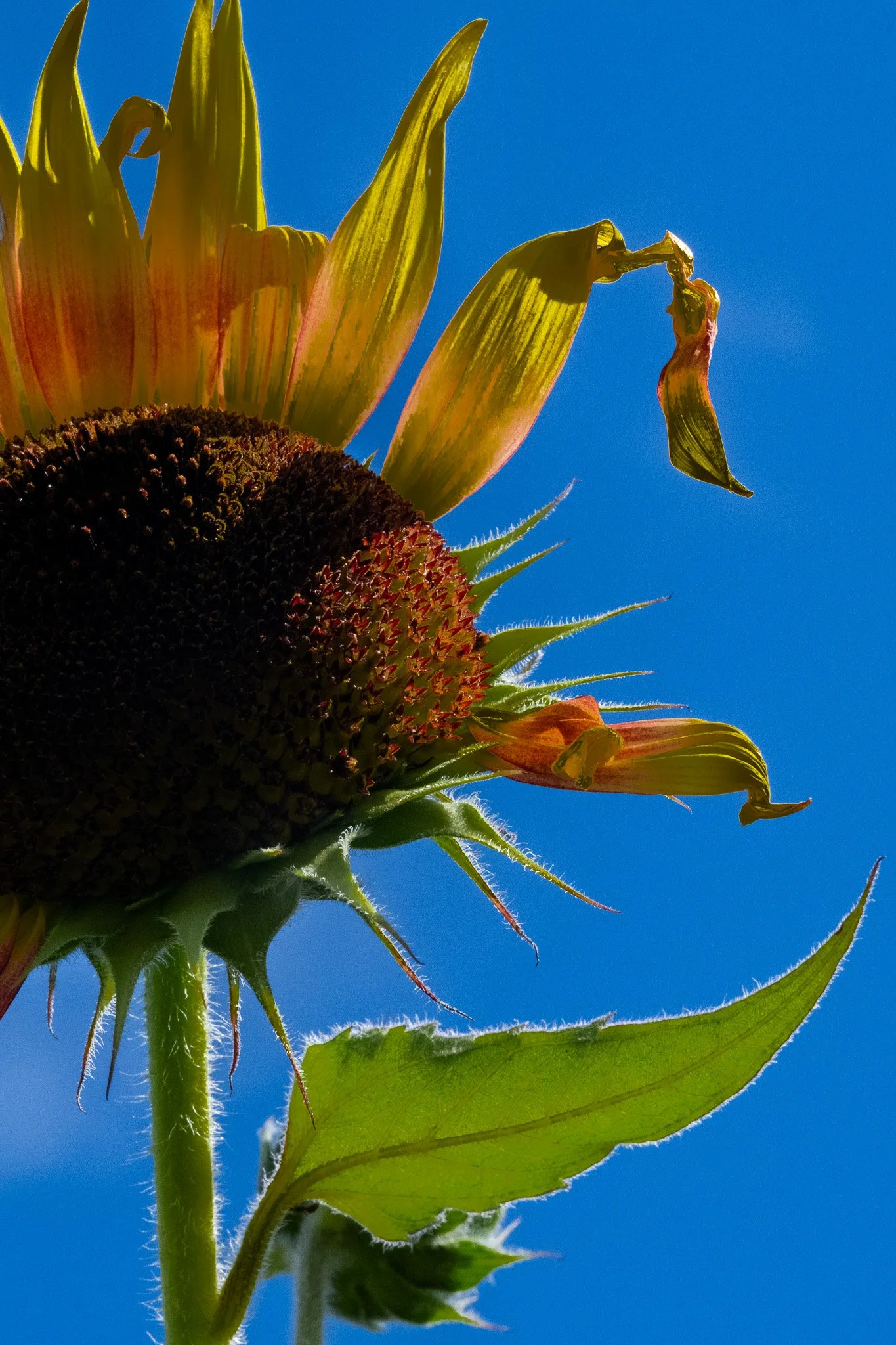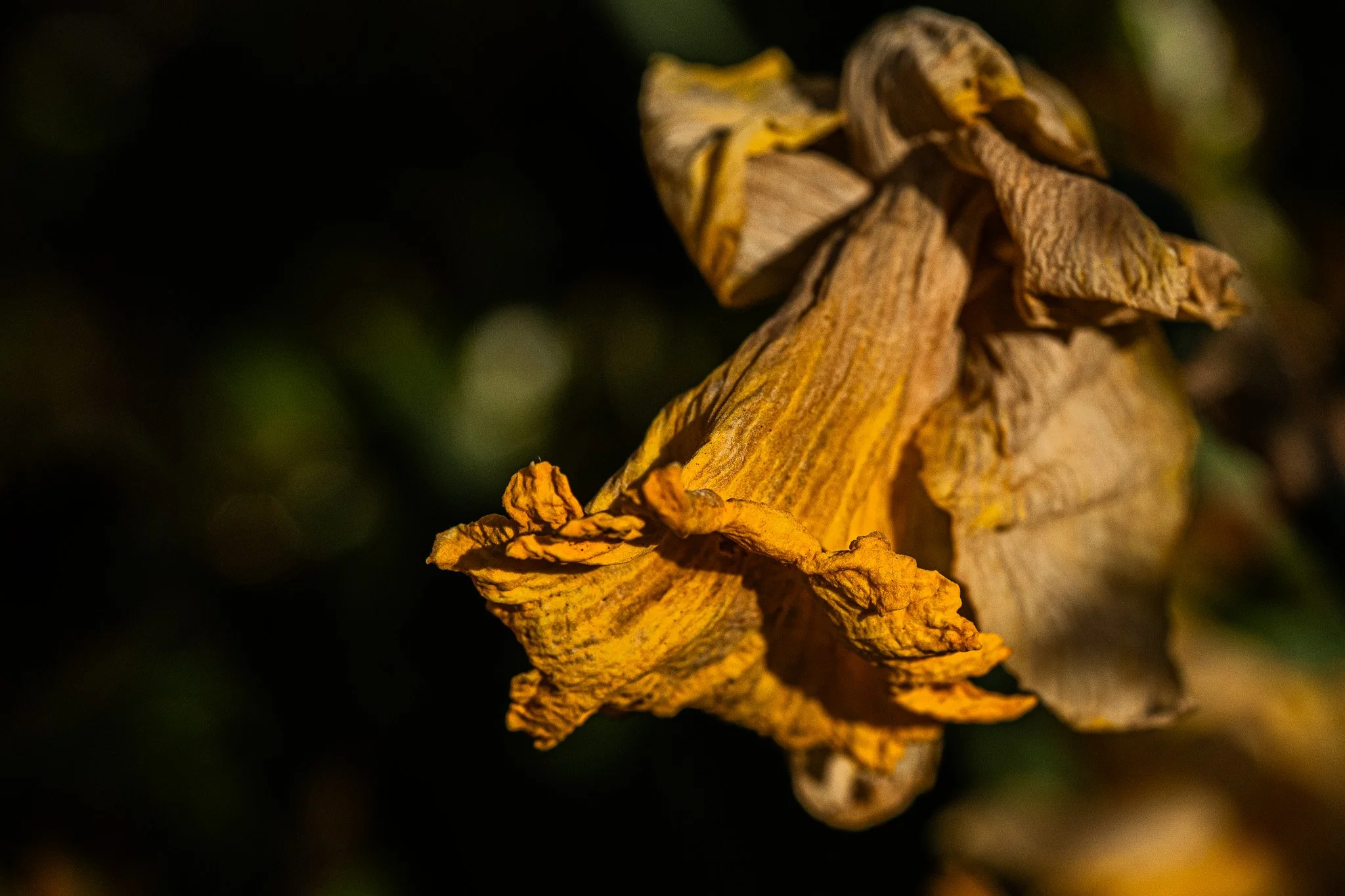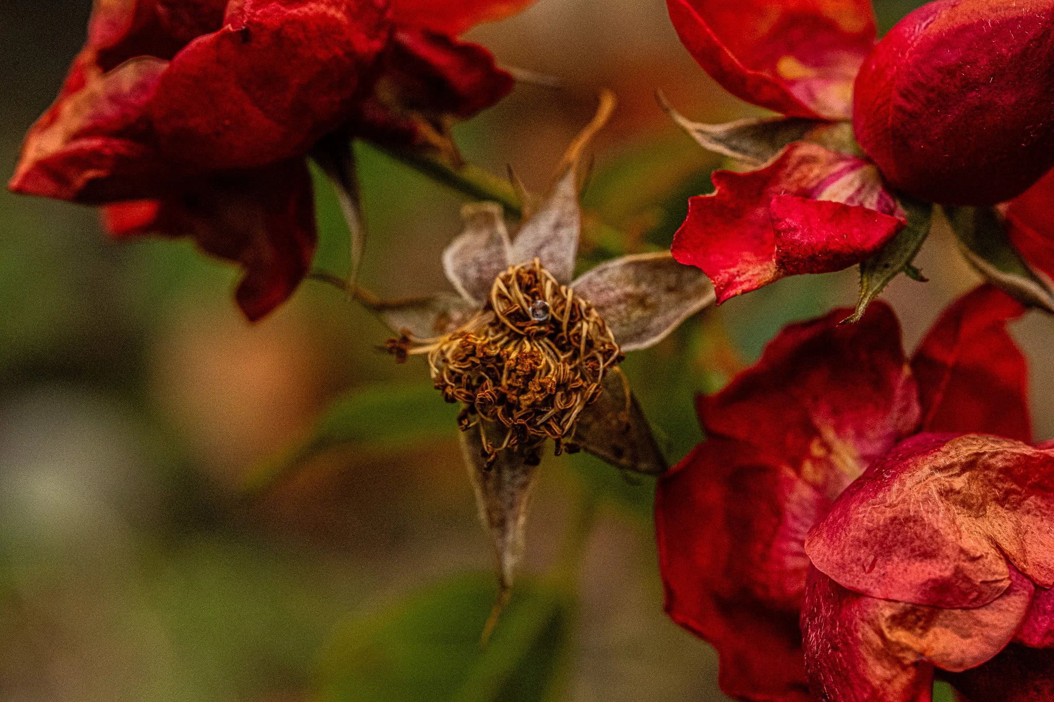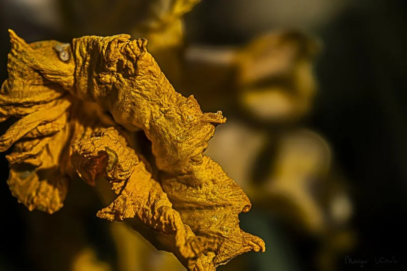 The lost petals and faded colors.